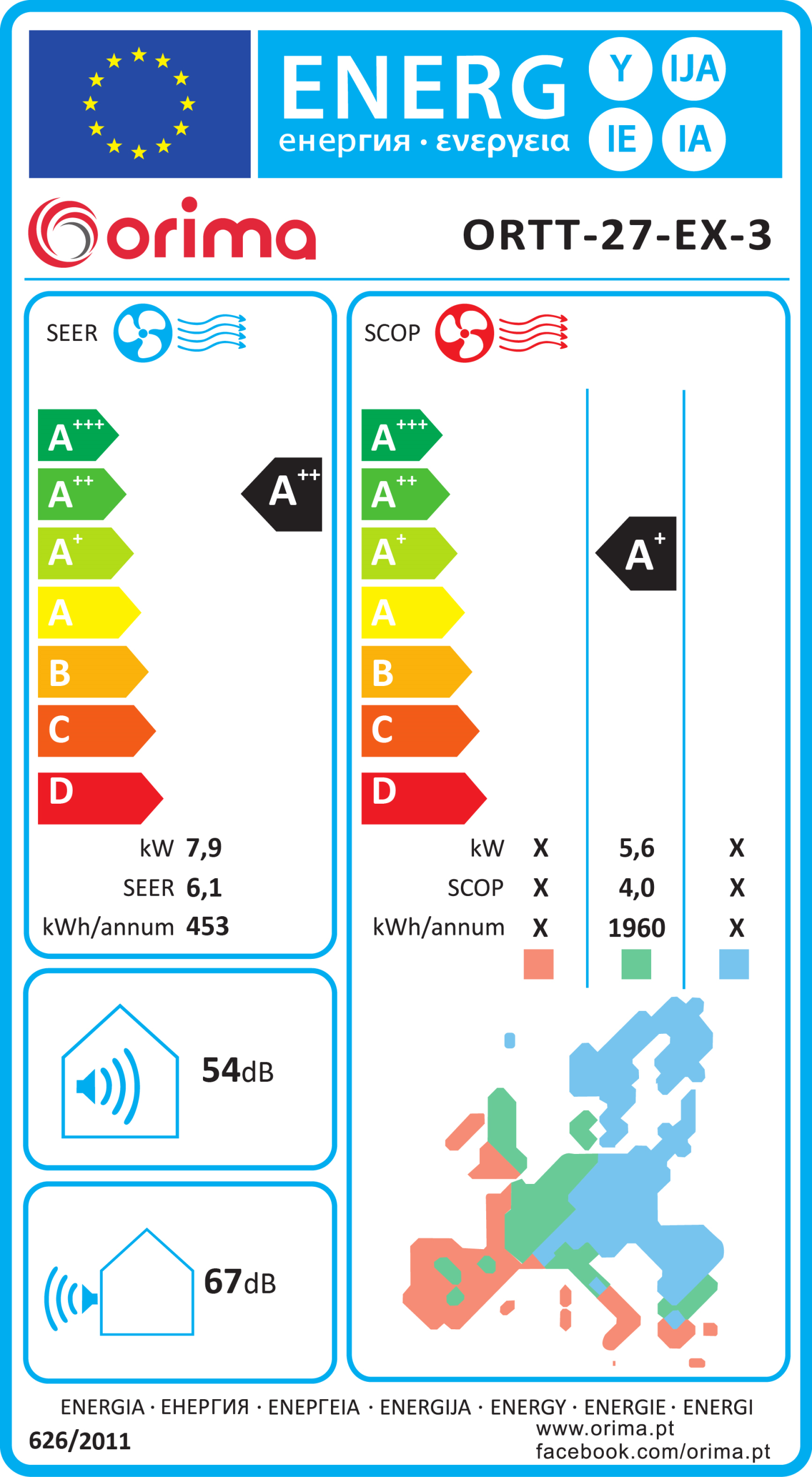 SCOP – Coeficiente de rendimento sazonal (em aquecimento): 4.0