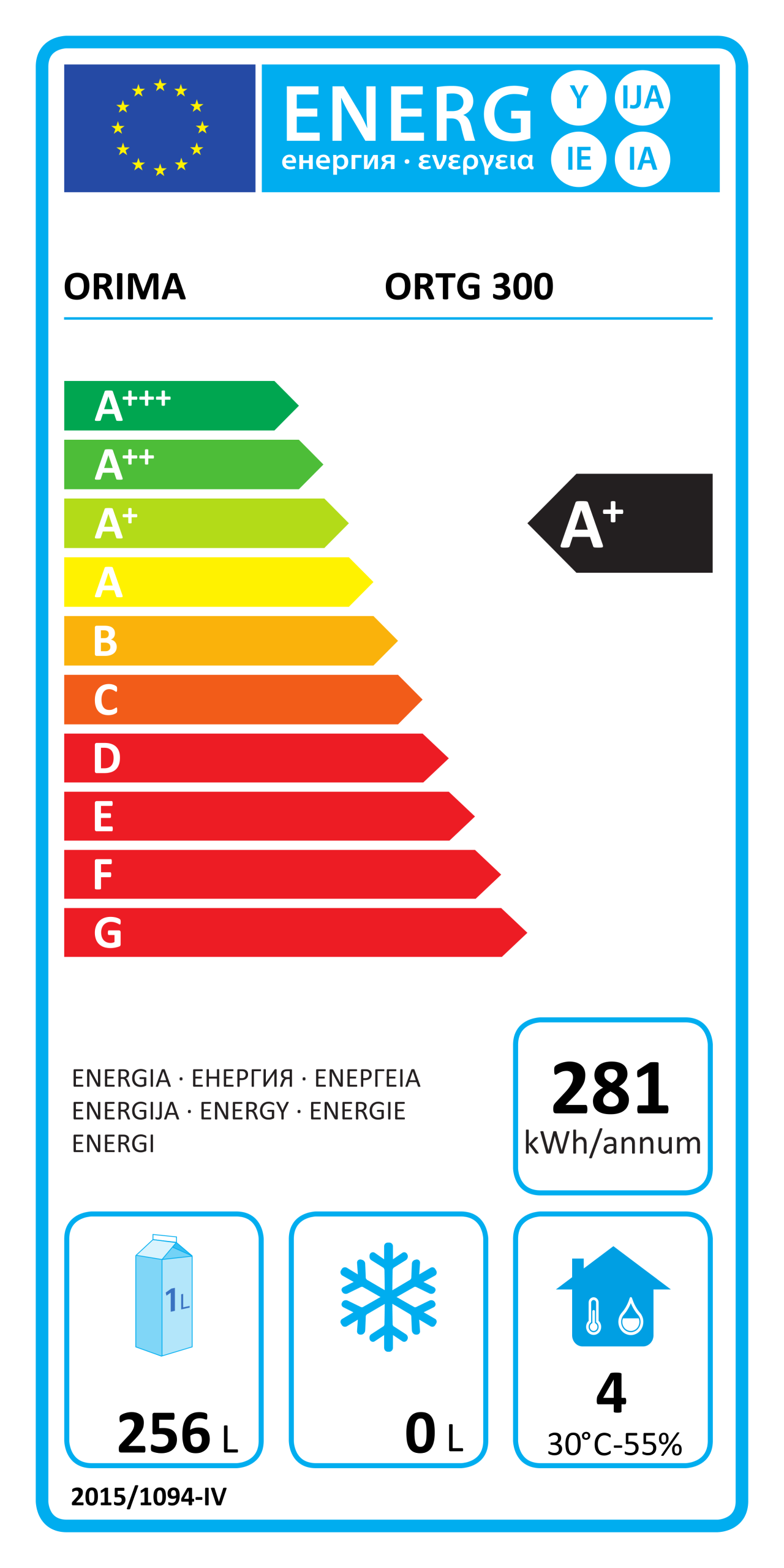 Consumo anual de energia: 281 kWh
